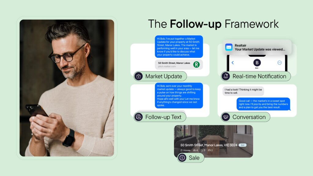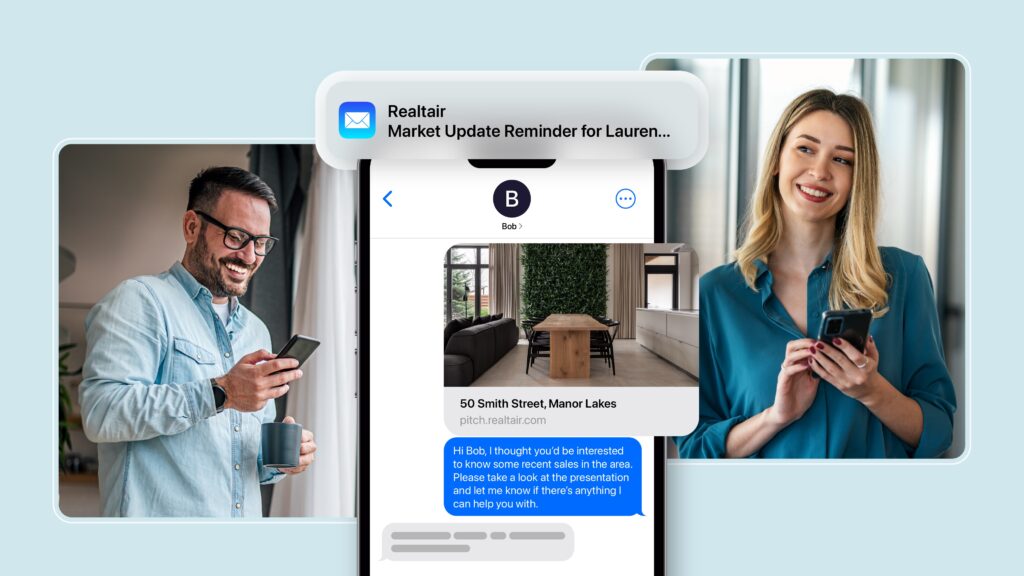 For most real estate agents, a text message works best. It’s direct, quick to read, and less disruptive than a phone call, and engagement rates are higher than email. A decade or two ago, following up on letterbox drops with calls was possible, but less effective. Today, a personalised text after a Market Update delivers the same intent with better results.